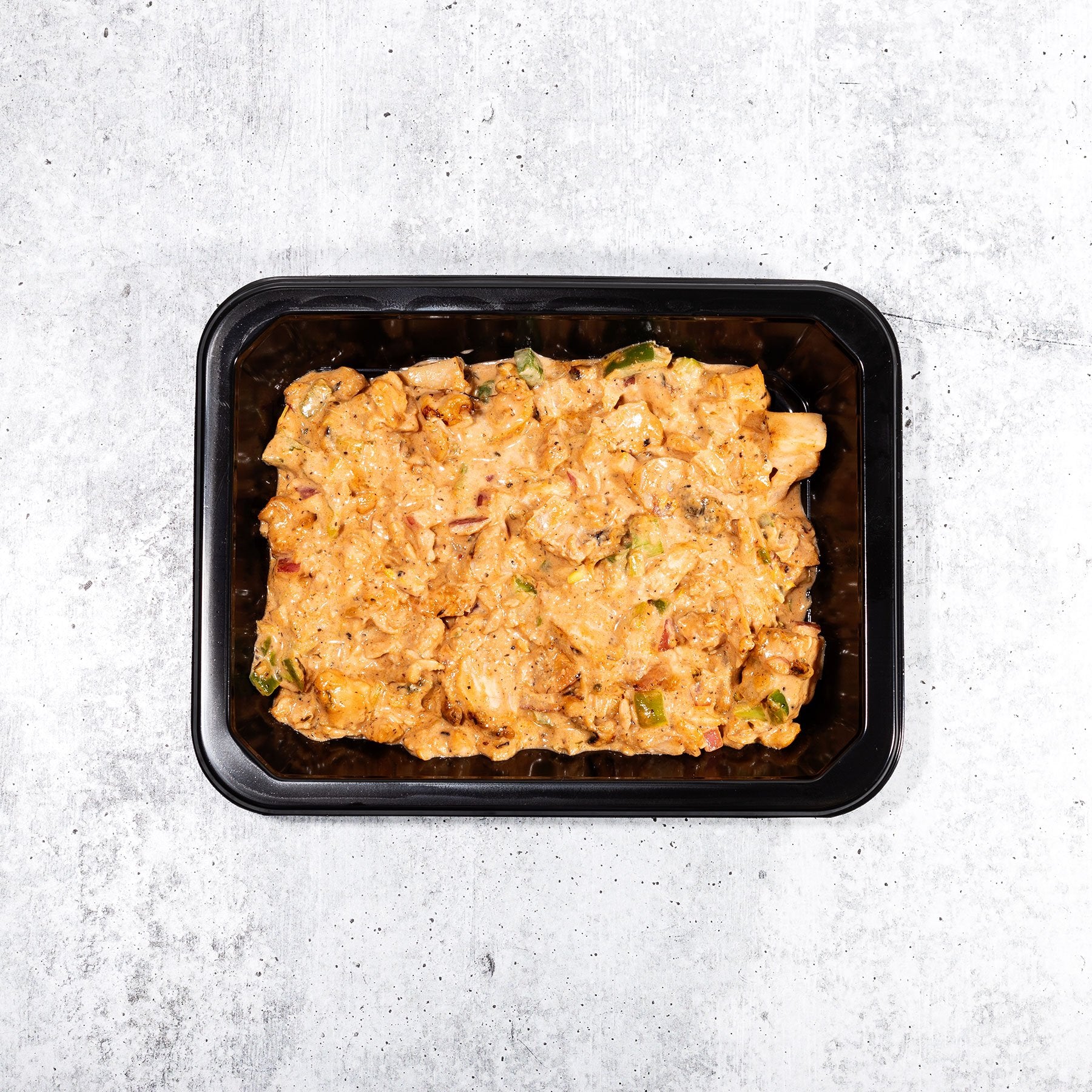 Chicken, BBQ Sauce (tomato paste (tomatoes, spices, natural flavors, citric acid), water, vinegar, coconut sugar, kosher salt, onion powder), Evolve Mayo (grapeseed oil, egg yolk, red wine vinegar, lemon juice, brown mustard (vinegar, water, mustard seed, salt, spices), kosher salt), Green Peppers, Onion, Celery, Salt, Pepper)