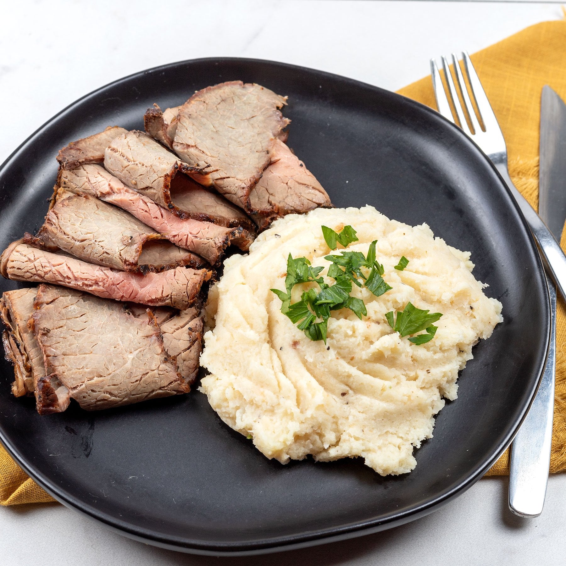 Perfectly grilled medium steak with a loaded duo of potato alternatives.