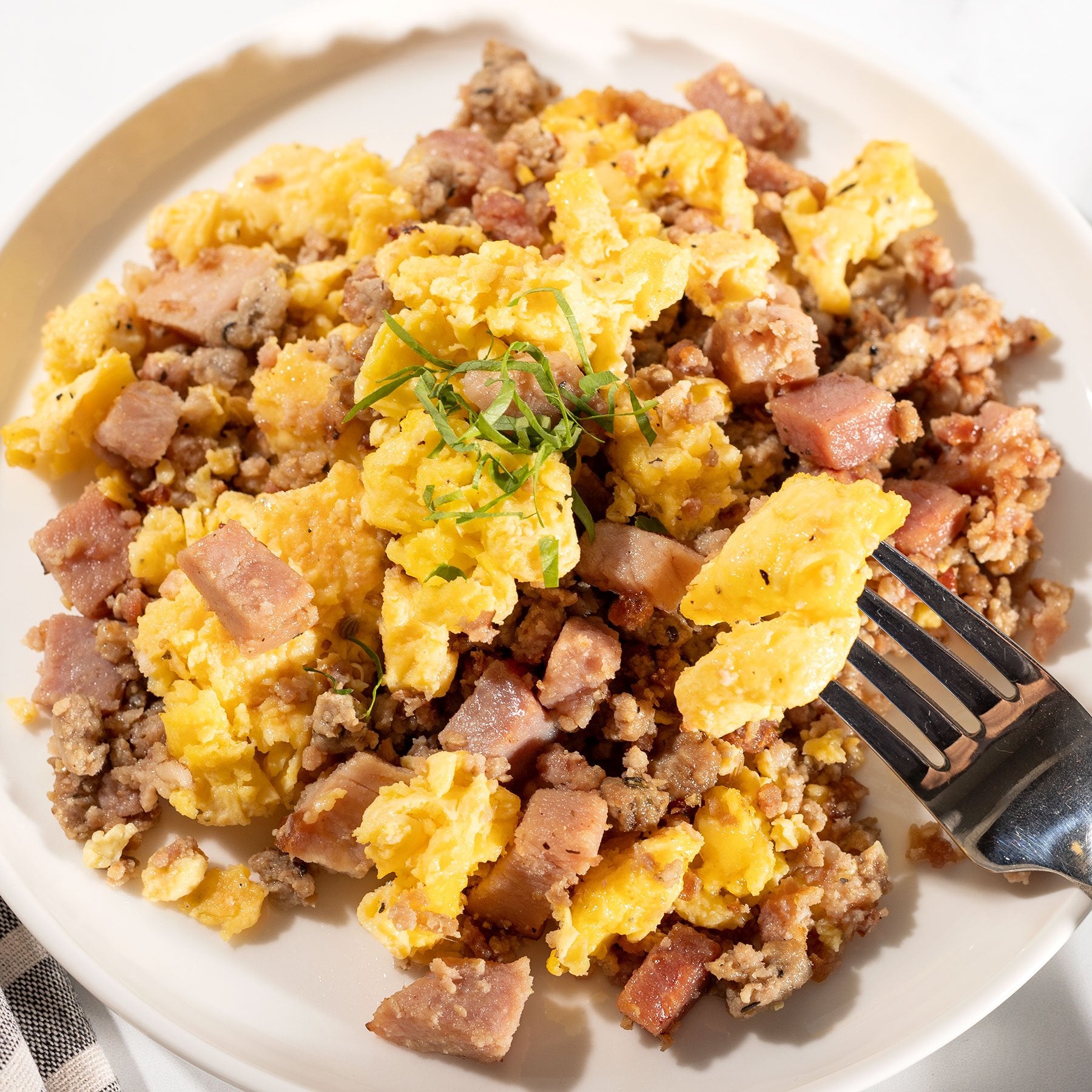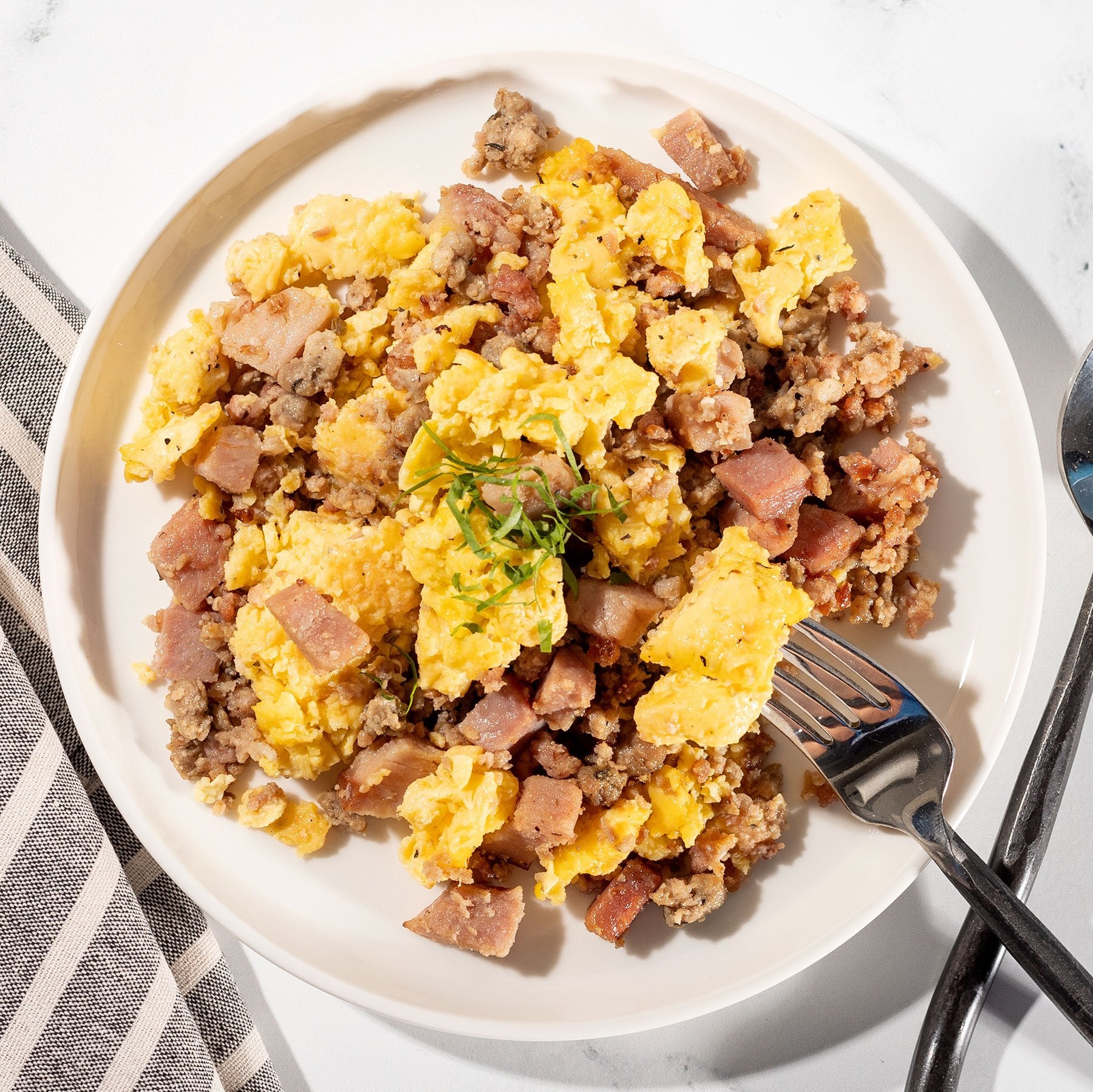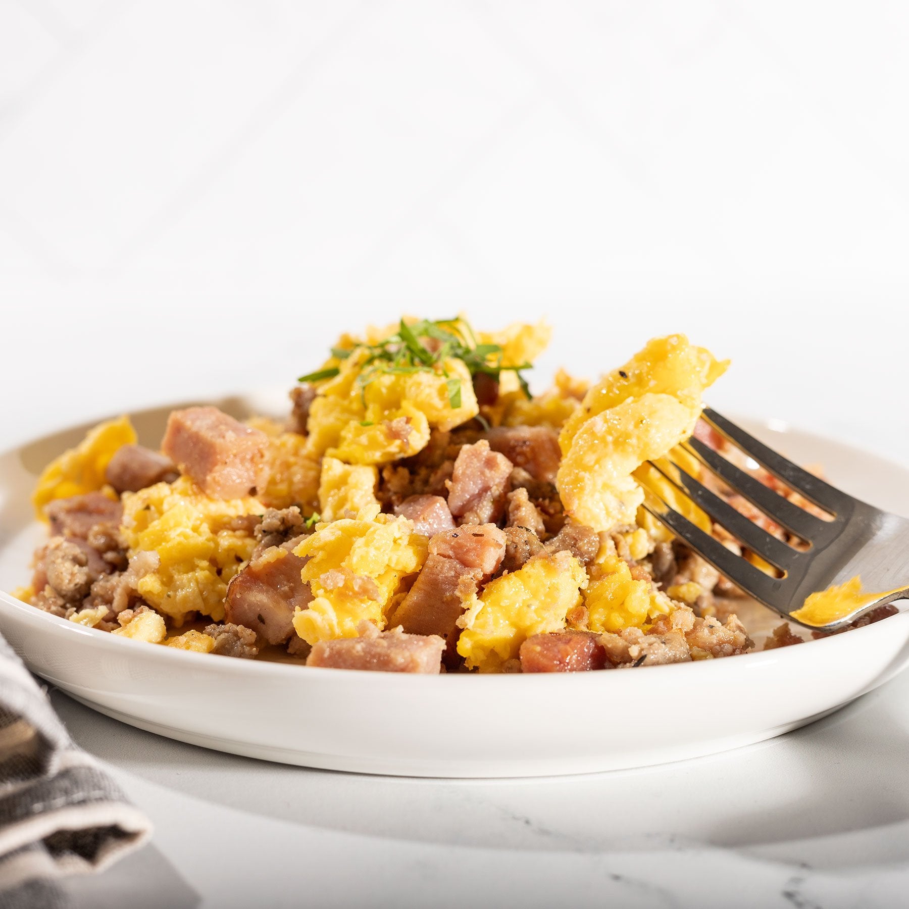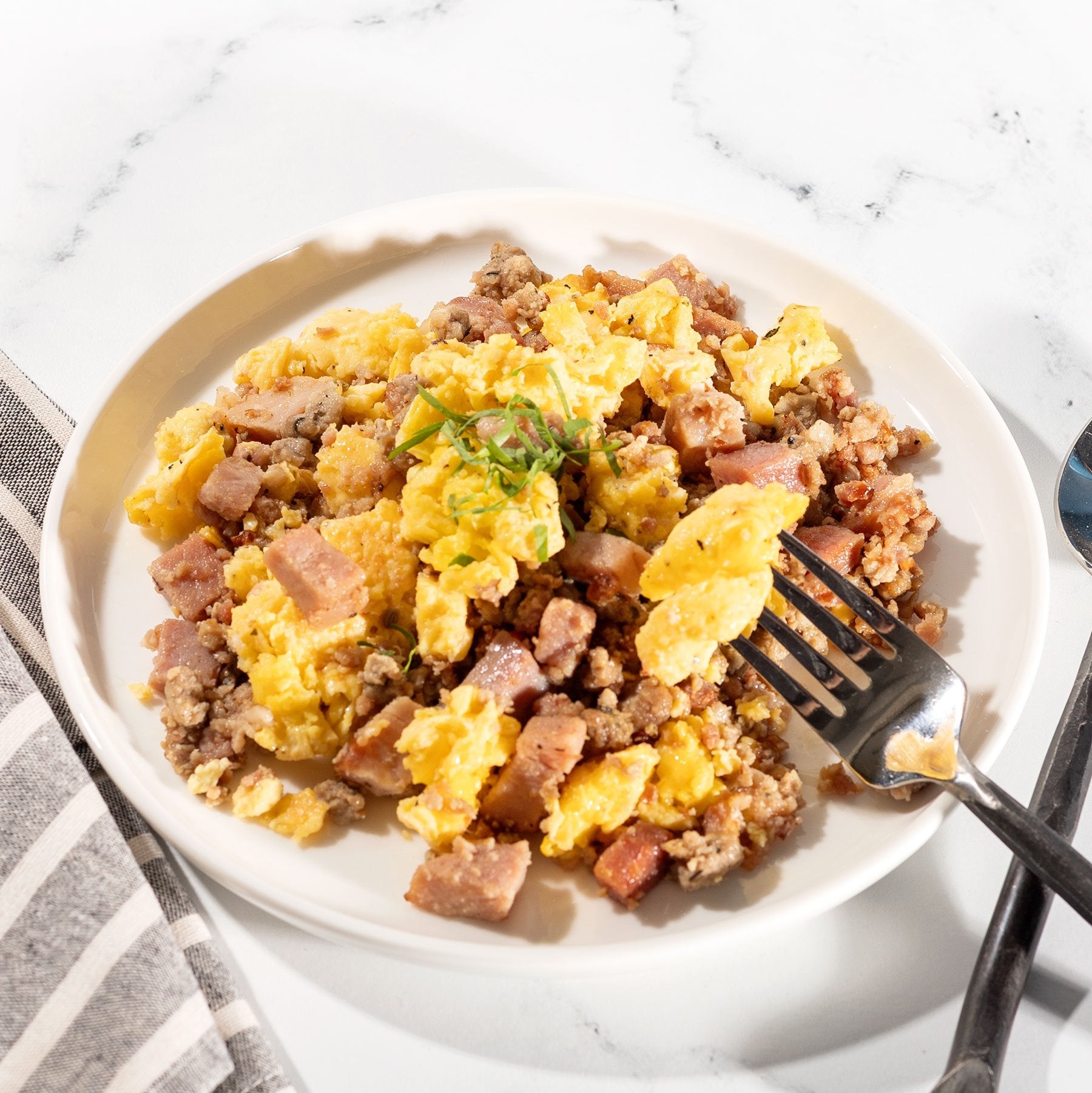 House made sausage, bacon and ham make this meal a delicious protein-packed start to your day or end if brinner is your thing.