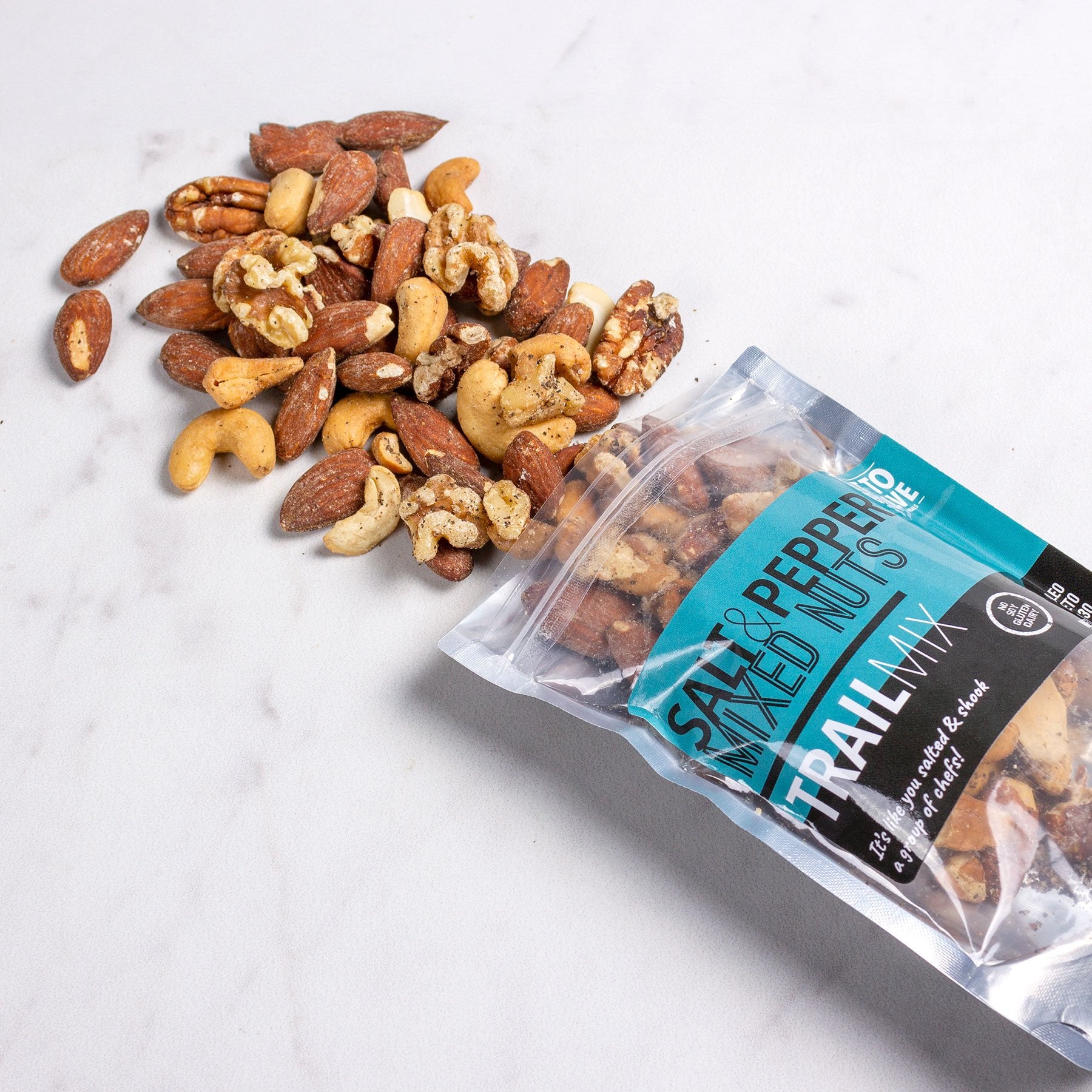 If you have had our Smoked Turkey Grab & Go, you will recognize this new flavor of trail mix. We decided it was so tasty in our grab and go that we should make it available to purchase on its own. This is a delicious combination of almonds, walnuts, cashews, and pecans with a generous sprinkling of salt and pepper.