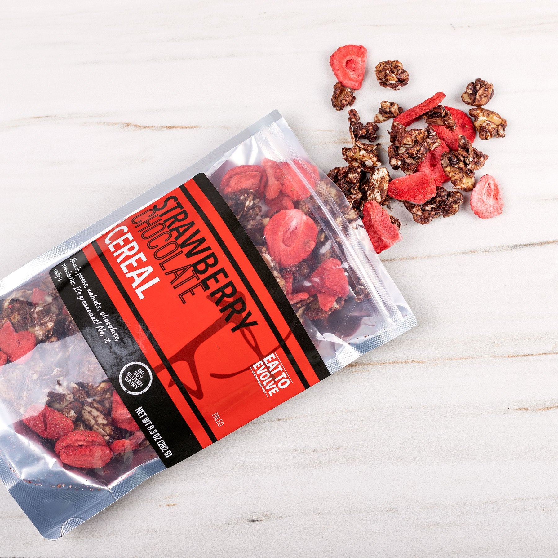 Got a busy morning? Gonna be in the car a while? Paleo cereal is perfect. Made from sliced almonds, walnuts, pecans, strawberries, honey, and a touch of cocoa, this is the perfect on the go snack; or add some almond milk for a simple and delicious breakfast.