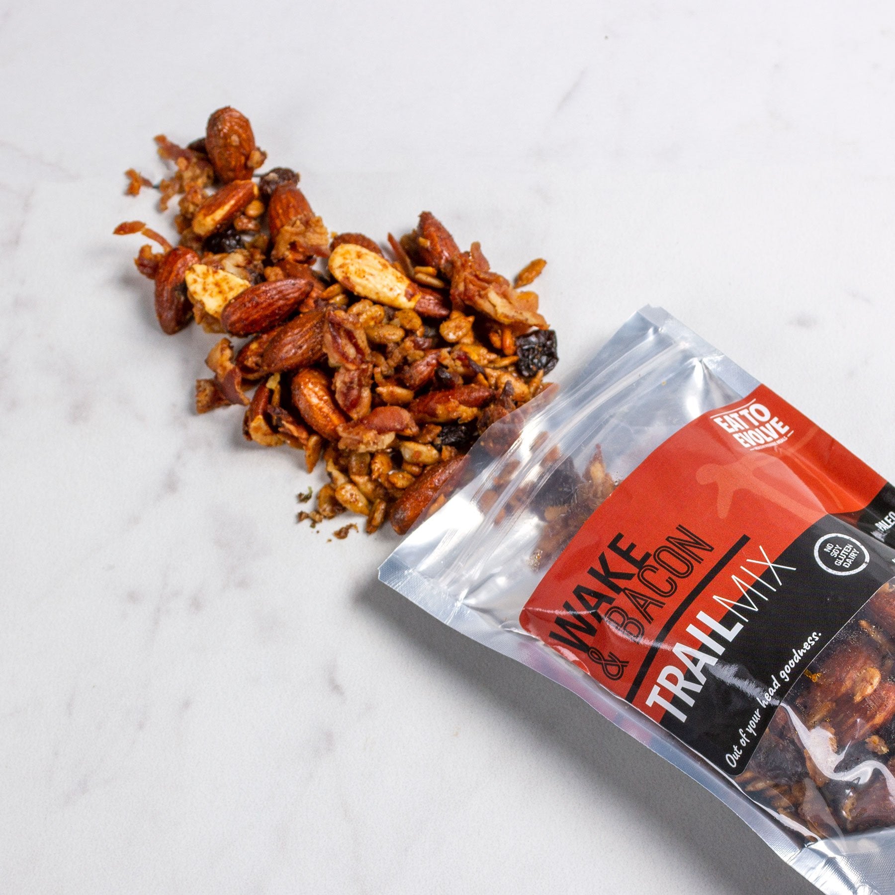 This hearty trail mix is the perfect mix of salty, sweet and spicy to be enjoyed any time of day but especially in the morning on your way out the door. With the combination of sweet maple, spicy sunflower seeds and salty bacon, all you have to do is wake up and leave the rest to us.